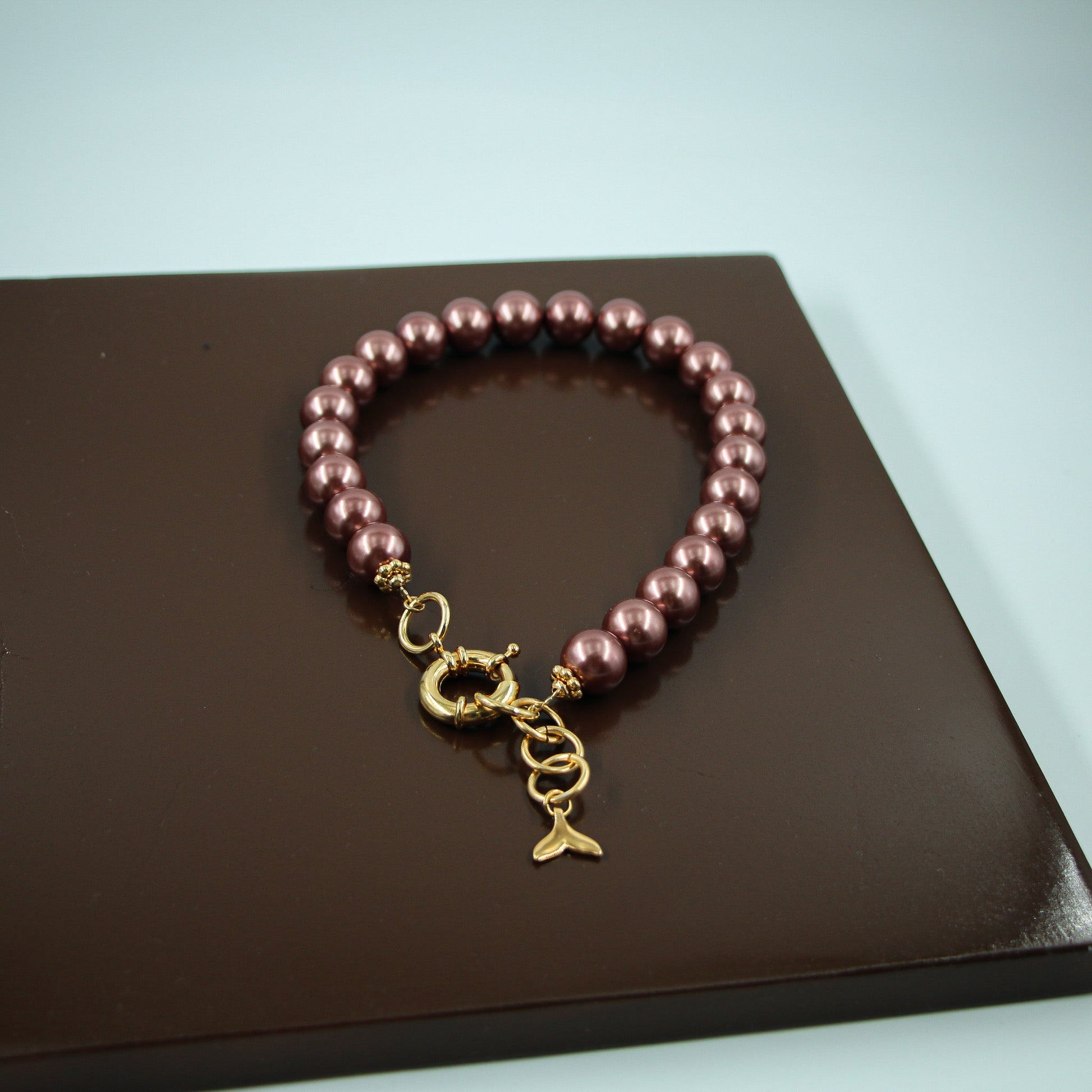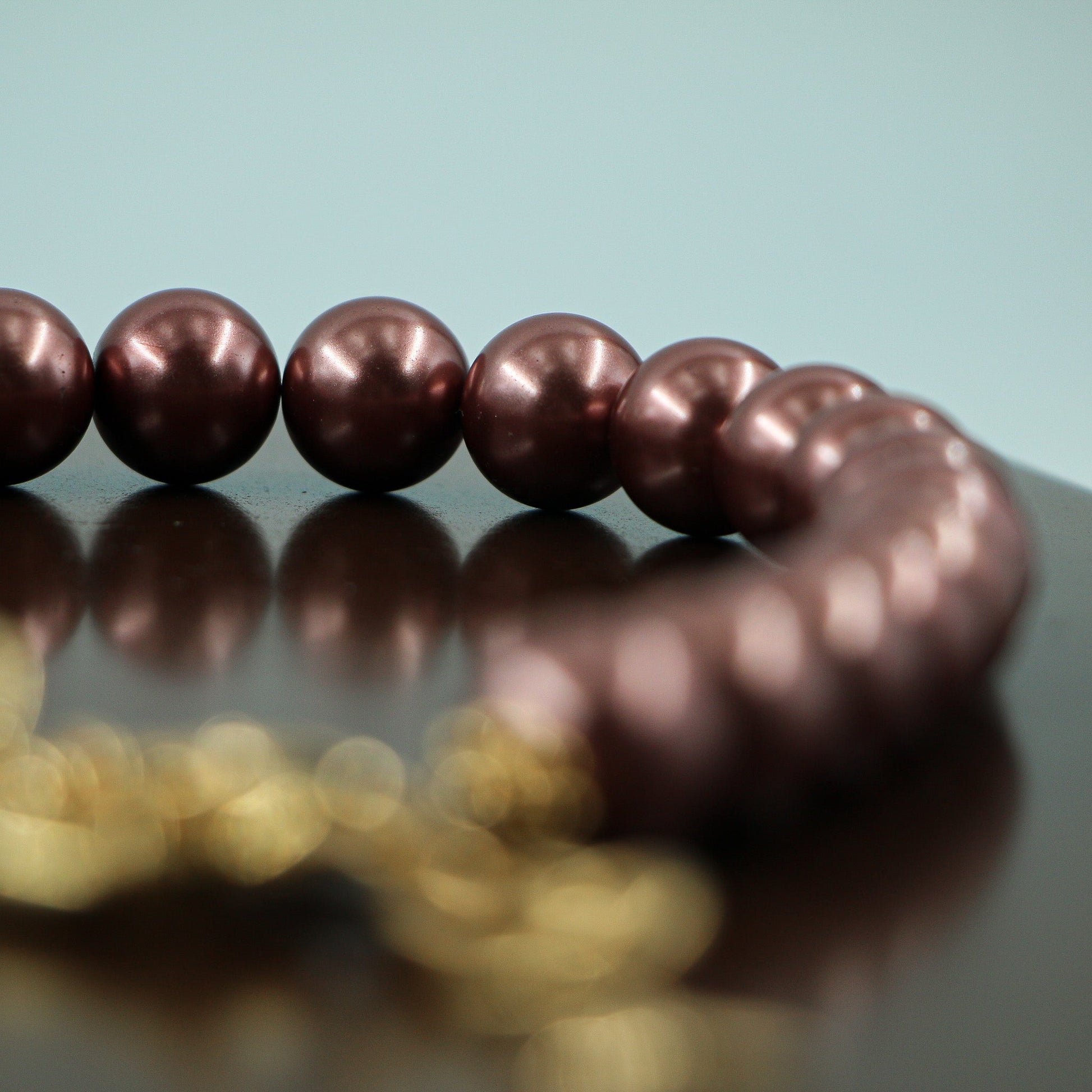 - Κολιέ με στρογγυλή πέρλα 14mm καφέ μπρονζέ