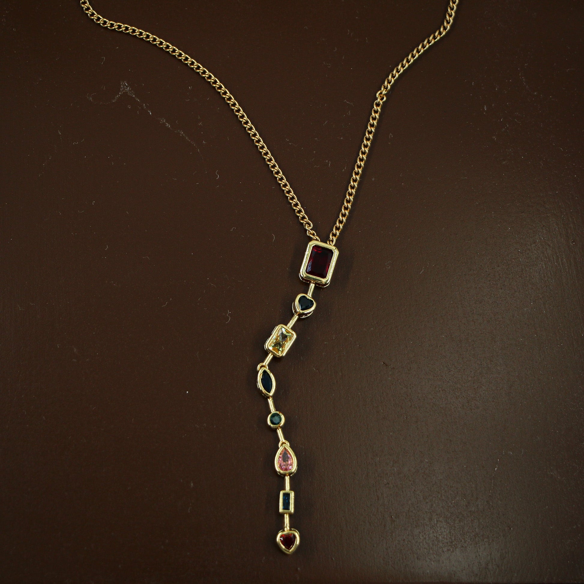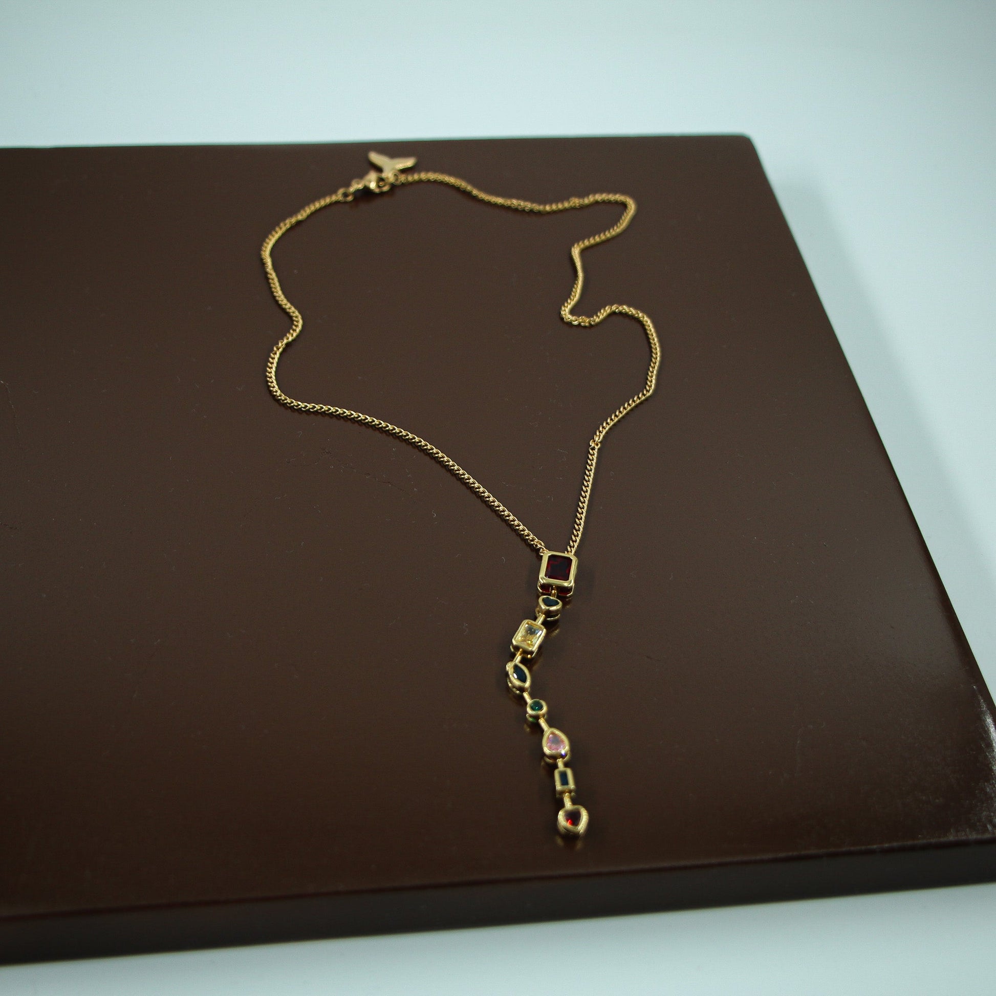 - Kολιέ με ατσάλινη αλυσίδα γραβάτα με πέτρες