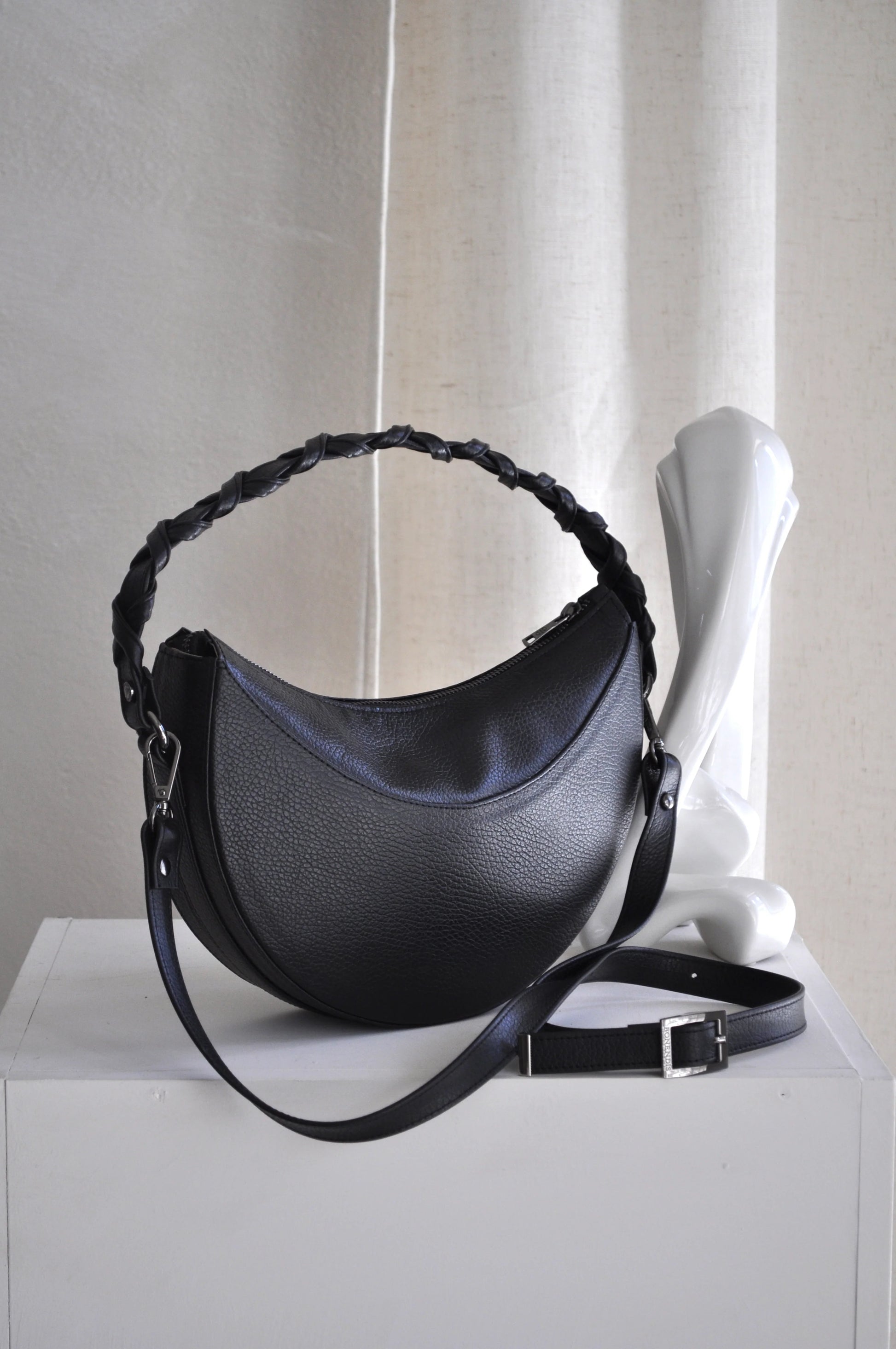 Η Sophie είναι η τσάντα που συνδυάζει μοναδικότητα και κομψότητα. Με ιδιαίτερο σχήμα μισοφέγγαρου, μπορεί να φορεθεί τόσο ως cross body όσο και ως shoulder bag ενώ το ξεχωριστό πλεκτό δερμάτινο χερούλι της αναδεικνύει κάθε εμφάνιση με στυλ